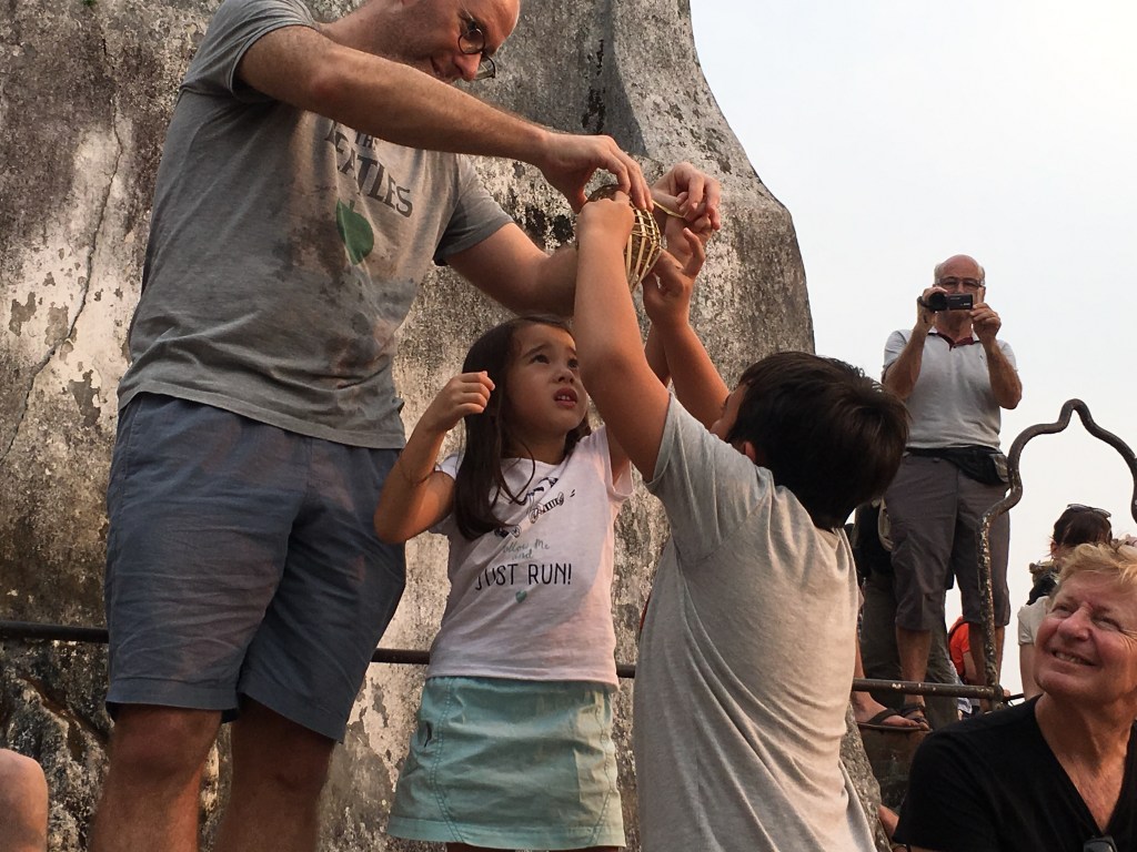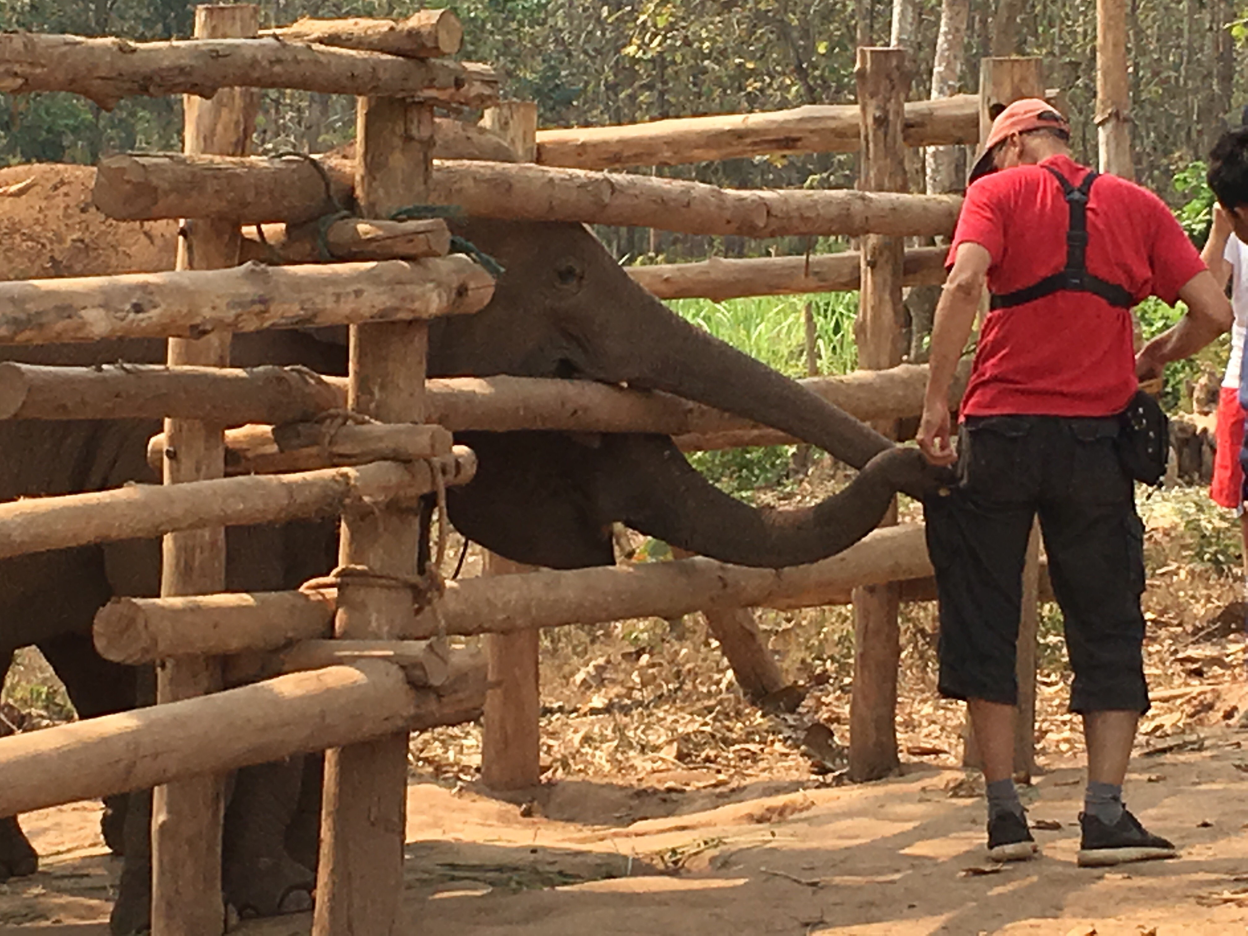 Having signed-up on-line before hearing the “to ride or not” controversy, I went to the original Elephant Sanctuary. They stopped using the heavy wooden seat structures and the rest of our group enjoyed their rides thoroughly. I discovered in the warm up ring that the elephants neck has big rolling bones that move in unpredictable ways and thought it best to avoid the steep path down to the river walk. Went to the village school instead and saw beautiful kids, the complicated writing in notebooks and the same math we all learned on the blackboard. The sanctuary had a beautiful pool for further hookey from the program.