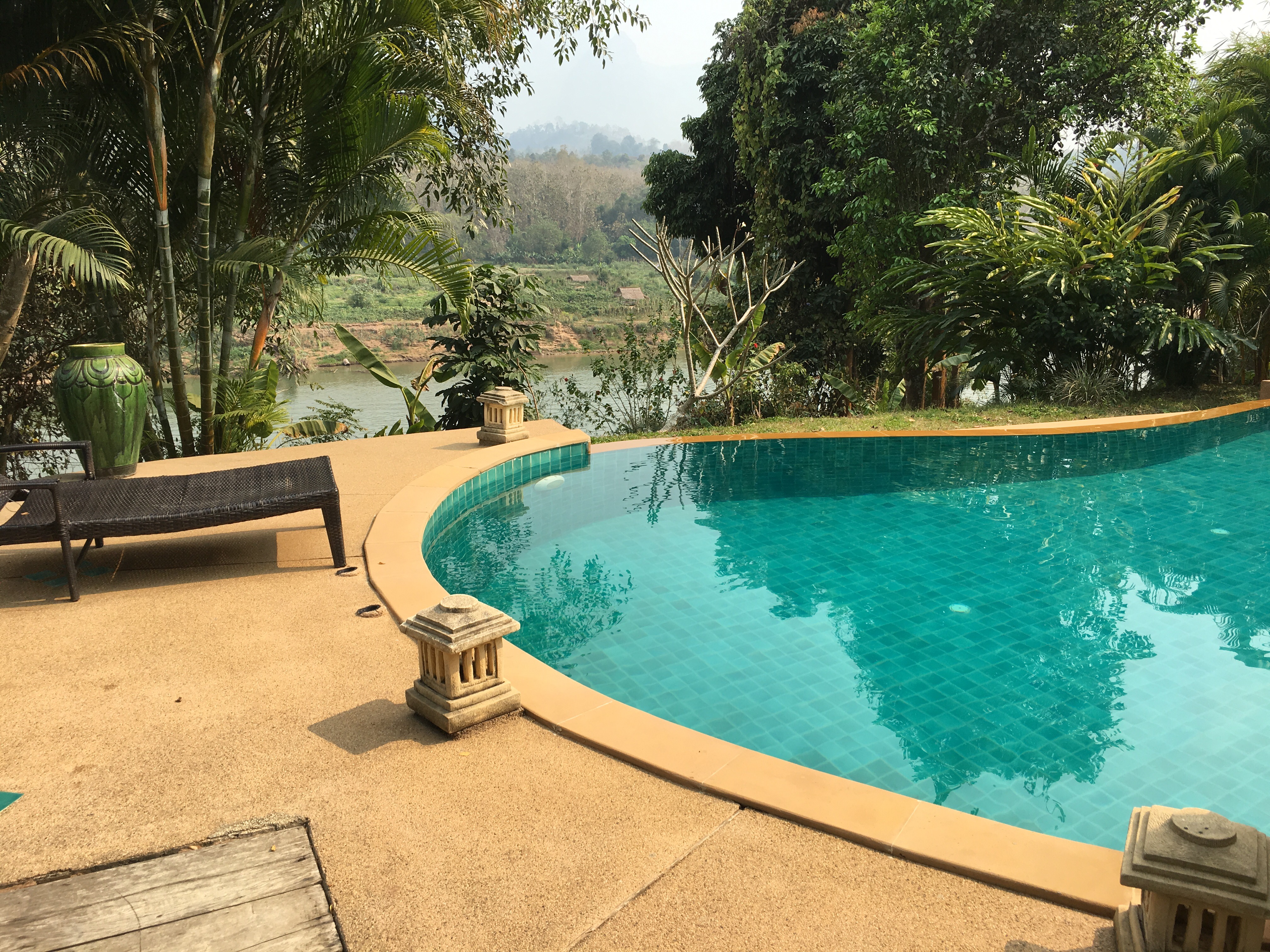 Laos only opened to the outside world in 1995 so one of the least developed places. I just found out that the one month of smoke filled air from slash & burn farming started on my arrival. The owner likes the rainy season when it’s lush, cooler and only rains a couple of hours mostly at night: June-Sept. The mosquitos aren’t bad he said.