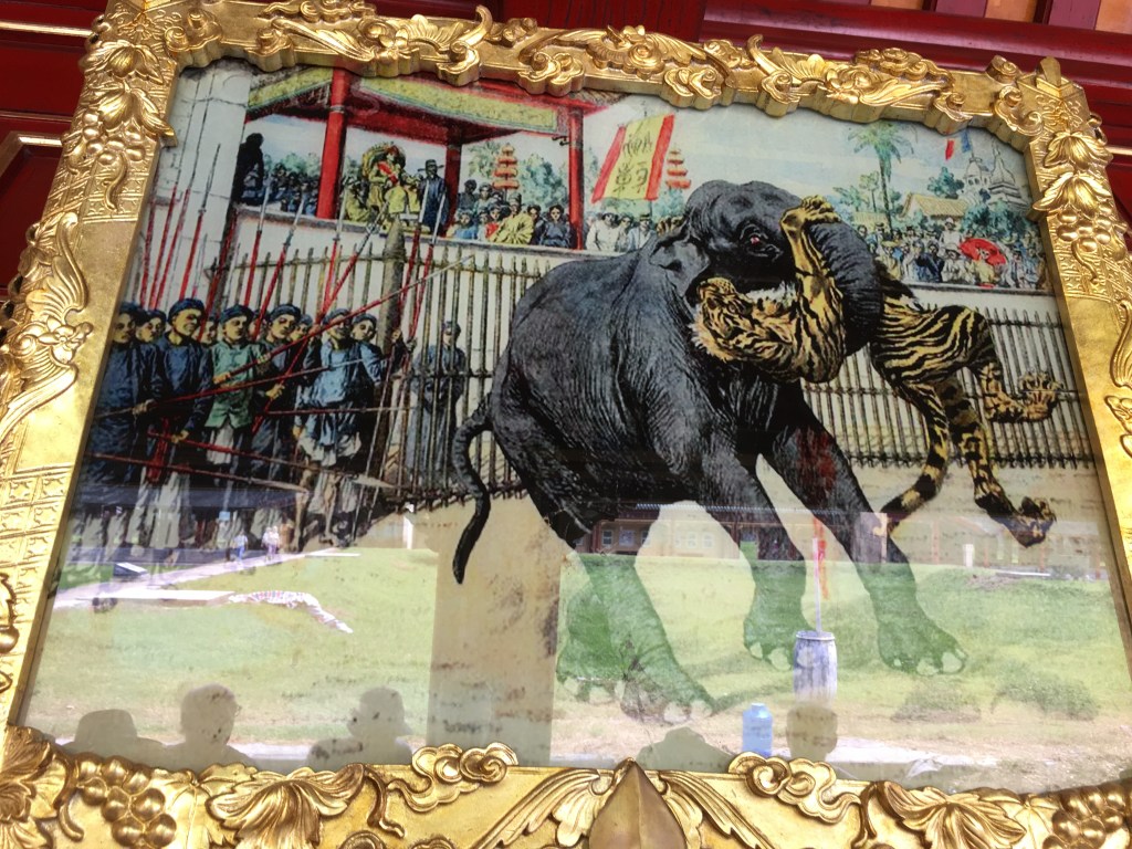 They had trained elephants representing the imperial government and declawed tigers representing those who might wish to overthrow. The tiger put up a clever fight leading to the elephants stomping to death a trainer so it was banned early in the 1900s.