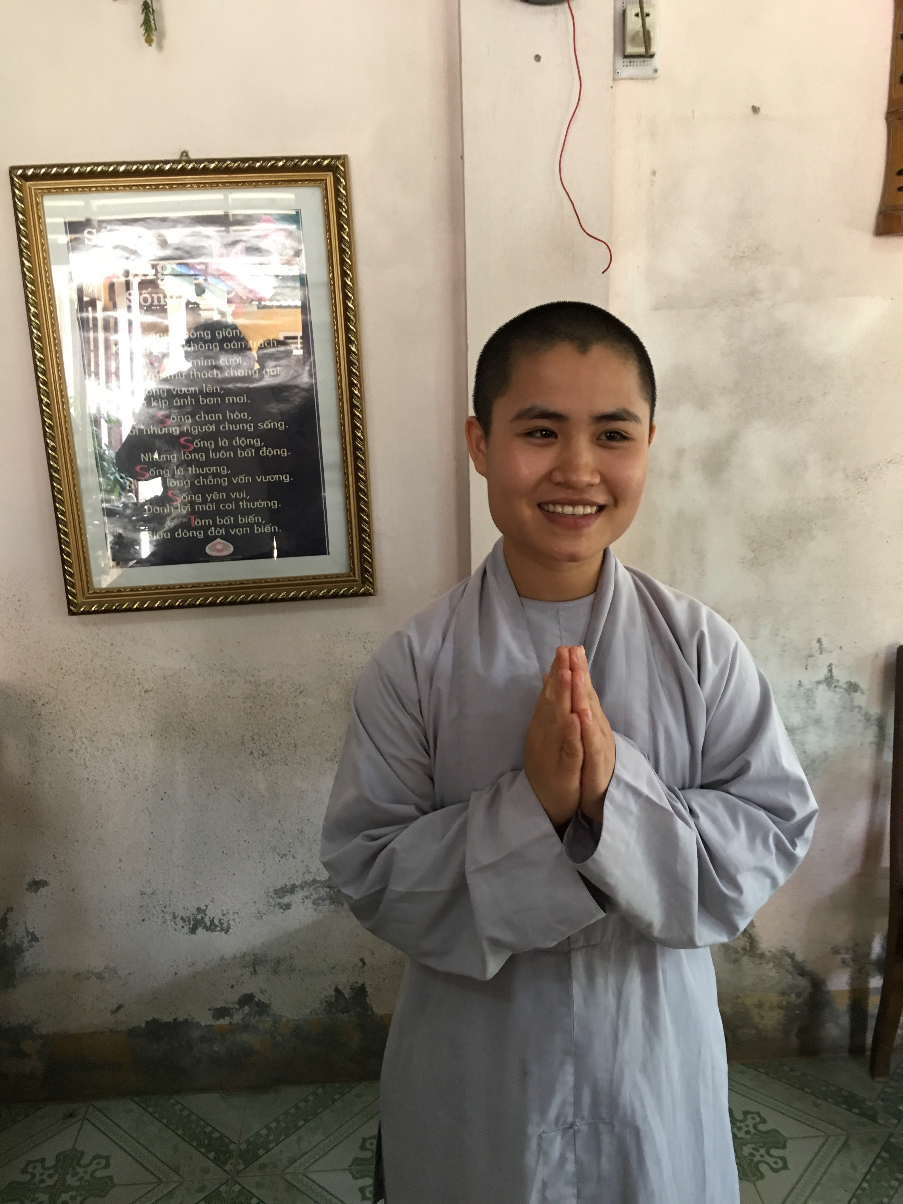 We took a boat to a temple and lunch at the Dieu Thanh monastery. After lunch we talked through our guide’s translation with a nun who arrived at 15 and hopes to spend her life there. They have a tolerant attitude towards a couple of vendors who fail to sell but who put our left-over lunches in bags to take home.