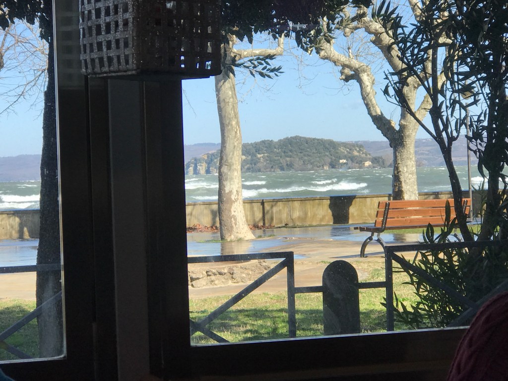 The wind whipped up the lake. Nice seafood lunch looking out at the turbulence.