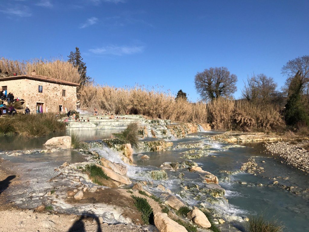 The windy cold kept Marty and his cold from the hot springs. I feel a major accomplishment after months of anticipation. People in down coats to left of shot.